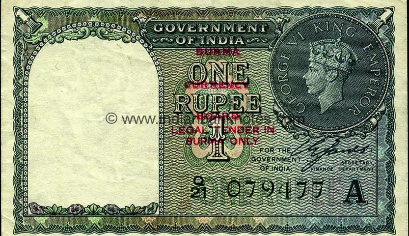 BURMA / CURRENCY / BOARD / LEGAL TENDER IN / BURMA ONLY in five lines in red.