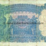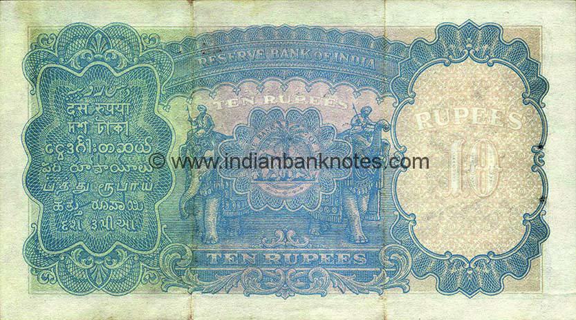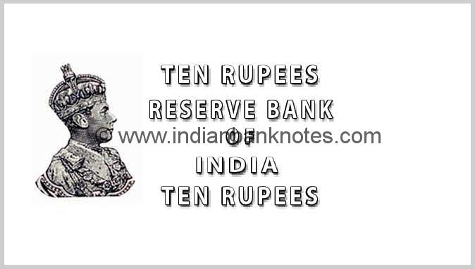 Profile portrait of King George VI facing right. In the centre TEN RUPEES / RESERVE BANK / OF / INDIA / TEN RUPEES in five lines.