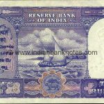 RESERVE BANK / OF INDIA in centre and GUARANTEED BY THE CENTRAL GOVERNMENT below it. Facing portrait of King George VI in right window, serial number in green below portrait. 10 in top corners. TEN RUPEES in Central Denomination Panel. RUPEES overwritten on ‘10’ on either side below promise text. Rs. /10 in lower middle. Signed by GOVERNOR FOR THE RESERVE BANK OF INDIA in lower left. Embedded metallic thread or ‘security thread’ as a security feature introduced.