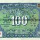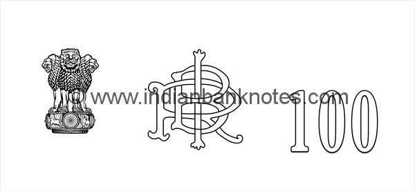 Ashoka Pillar on left. Stylised RBI monogram in centre, bold 100 in lower right.