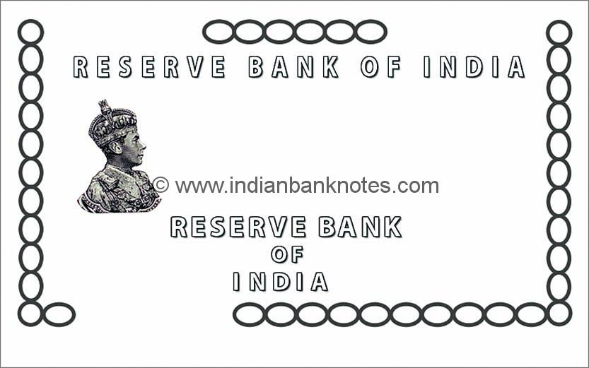 Profile portrait of King George VI facing right. RESERVE BANK OF INDIA above portrait, and RESERVE BANK / OF / INDIA in three lines below it. Six links on top, ten links below connected to the eleven vertical links on the right and one link below connected to the eleven vertical links to the left.