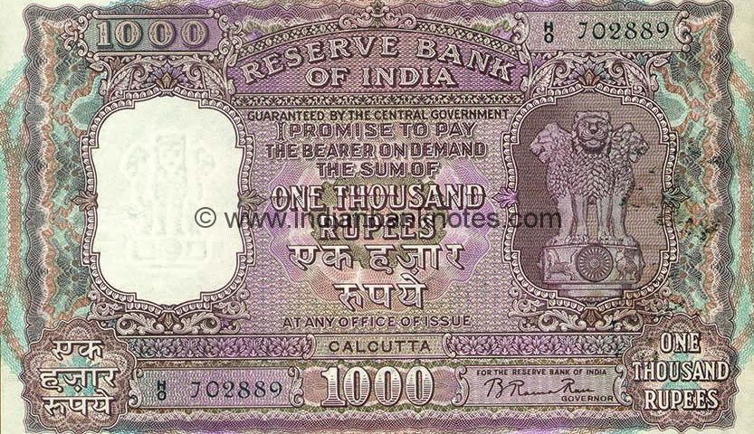 Same as Type 6.9.1 except Value in Hindi grammatically corrected reads EK HAZAAR / RUPAYE in Hindi in Central Denomination Panel and grammatically corrected EK / HAZAAR / RUPAYE in Hindi in lower left corner on obverse and EK HAZAAR RUPAYE in Hindi below it on reverse.