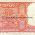 Orange Colour Note RESERVE BANK / OF INDIA with GUARANTEED BY THE CENTRAL GOVERNMENT above it. Ashoka Pillar in right window, Serial number below below Ashoka Pillar. 5 in top corners. FIVE / RUPEES and PAANCH RUPAYE in Hindi in Central Denomination Panel. Signed by GOVERNOR For THE RESERVE BANK OF INDIA. No relief underprint. Security thread. Dual colour tint on borders. “I PROMISE TO PAY THE BEARER ON DEMAND THE SUM OF FIVE RUPEES AT THE OFFICE OF ISSUE AT BOMBAY”.