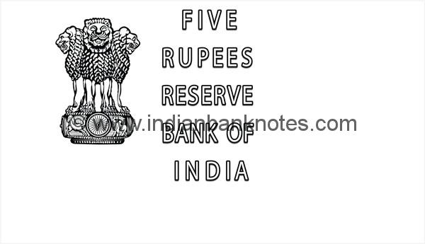 Ashoka Pillar on left. FIVE/RUPEES/RESERVE/BANK OF/INDIA in five lines in centre.